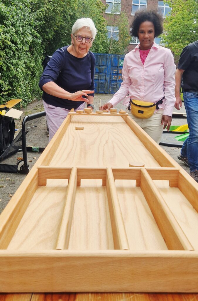 Zum Einsatz kommen wird der Sport und Spiel-Anhänger bei unterschiedlichen Festen und Aktivitäten in und außerhalb des Martinshofes. Die Bilder zeigen ihn beim Einsatz auf dem Sommerfest des Martinshofs Schiffbauerweg.